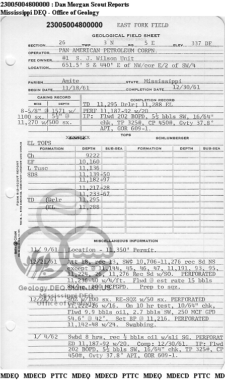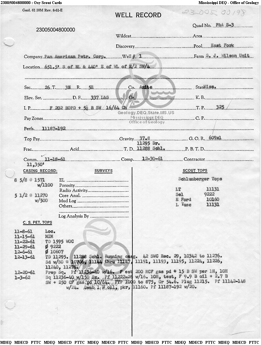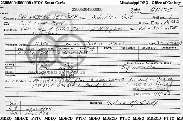 | 1 | 23005004800000 | PAN AMERICAN PETROLEUM CORP. | S J WILSON UNIT | 1 | Oil Production |