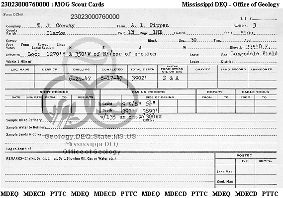 | 1 | 23023000760000 | GENERAL AMERICAN OIL CO. | A.L.PIPPIN | 3 | Disposal |