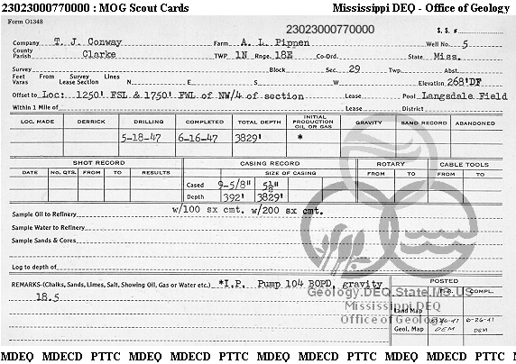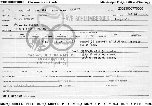 | 1 | 23023000770000 | MEERKAT MISSISSIPPI, LLC | A L PIPPEN | 5 | Oil Production |