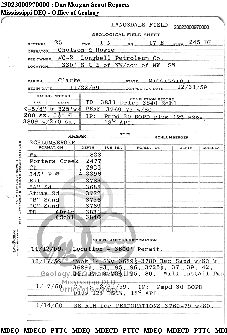 | 1 | 23023000970000 | MEERKAT MISSISSIPPI, LLC | LONG BELL PET | G-2 | Oil Production |