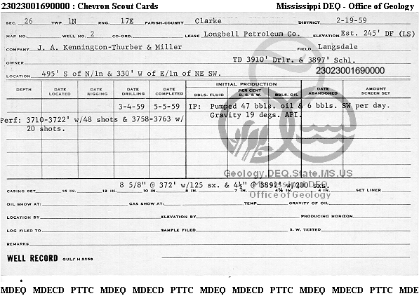 | 1 | 23023001690000 | THURBER, GEORGE JR. & SON | LONG BELL | 2 | Oil Production |