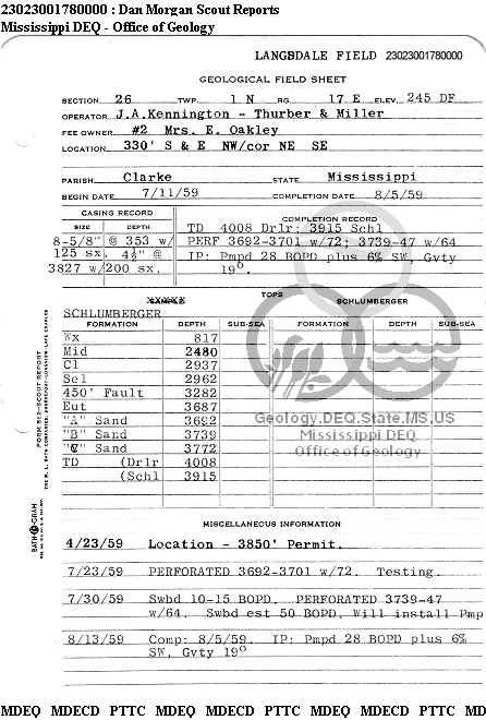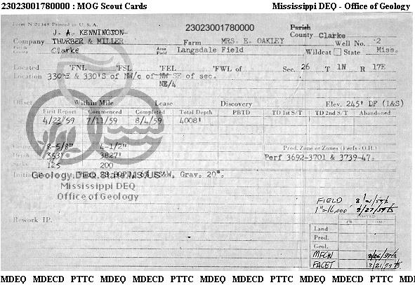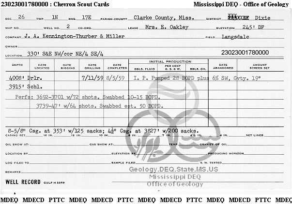 | 1 | 23023001780000 | THURBER, GEORGE JR. & SON | MRS E OAKLEY | 2 | Oil Production |