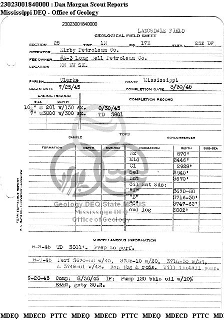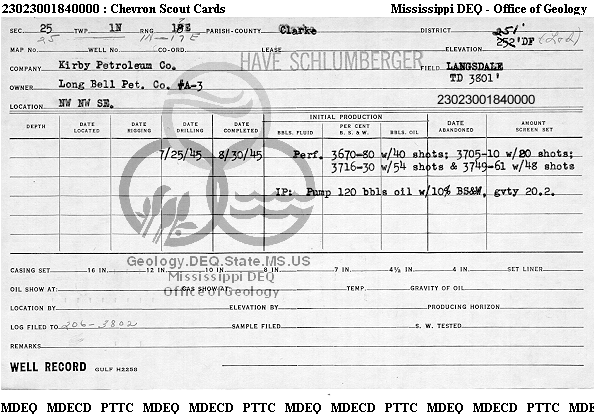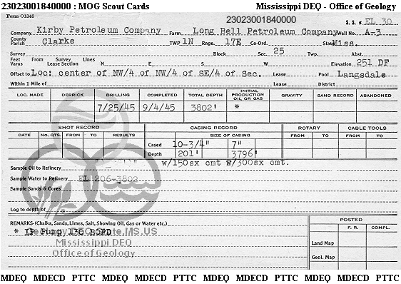 | 1 | 23023001840000 | MEERKAT MISSISSIPPI, LLC | LONG BELL PET CO | A-3 | Oil Production |