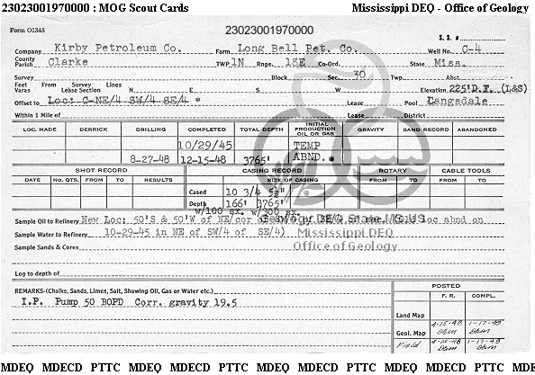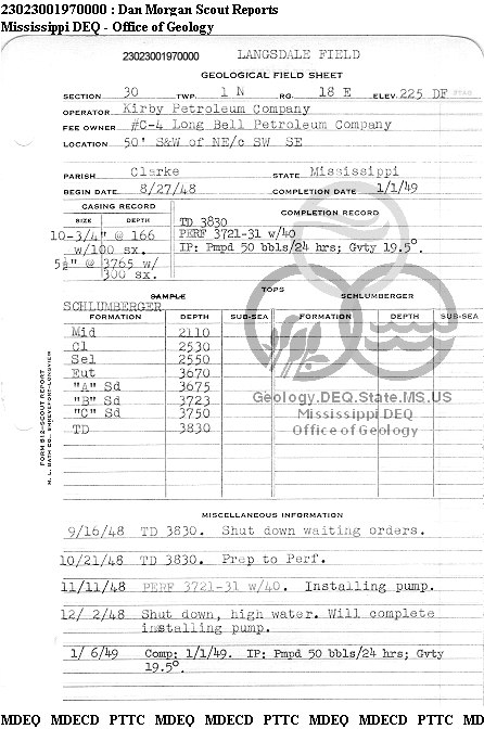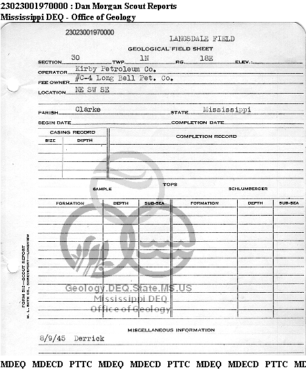 | 1 | 23023001970000 | MEERKAT MISSISSIPPI, LLC | LONG BELL PET CO | C-4 | Oil Production |