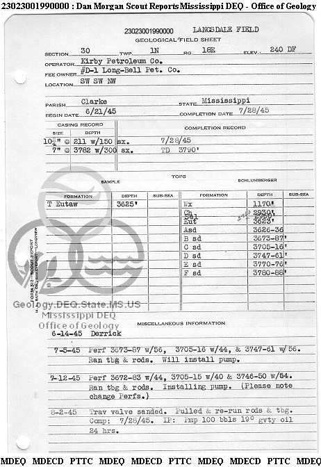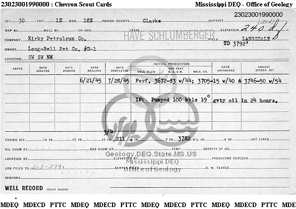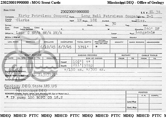 | 1 | 23023001990000 | GHOLSON & LATIMER | LONG BELL PET CO | D-1 | Oil Production |