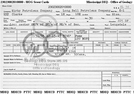 | 1 | 23023002010000 | CHM PETROLEUM CO., INC. | LONG BELL PET CO | E-1 | Oil Production |