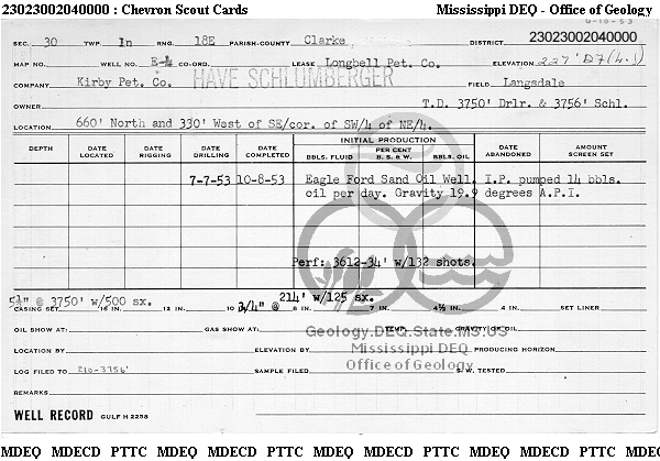 | 1 | 23023002040000 | CHM PETROLEUM CO., INC. | LONG BELL PET CO | E-4 | Oil Production |