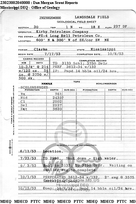 | 23023002040000 | Misc Logs | Induction Electric Log | view | 1 |