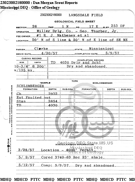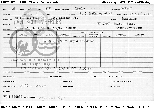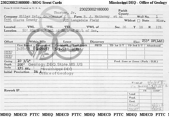 | 1 | 23023002180000 | THURBER, GEORGE JR. & SON | R J MATHENEY | 1 | Dry Hole |