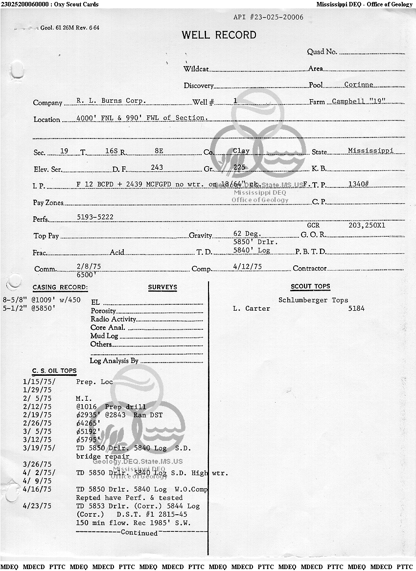 | 2 | Samples | 4916.0 - .1 | 1160 | 2600 | E-Log N/A Resort by Loc. |