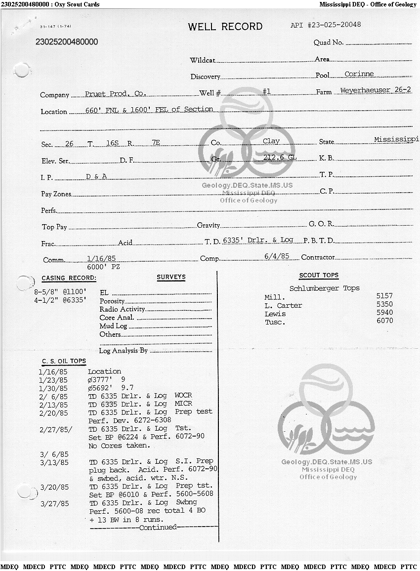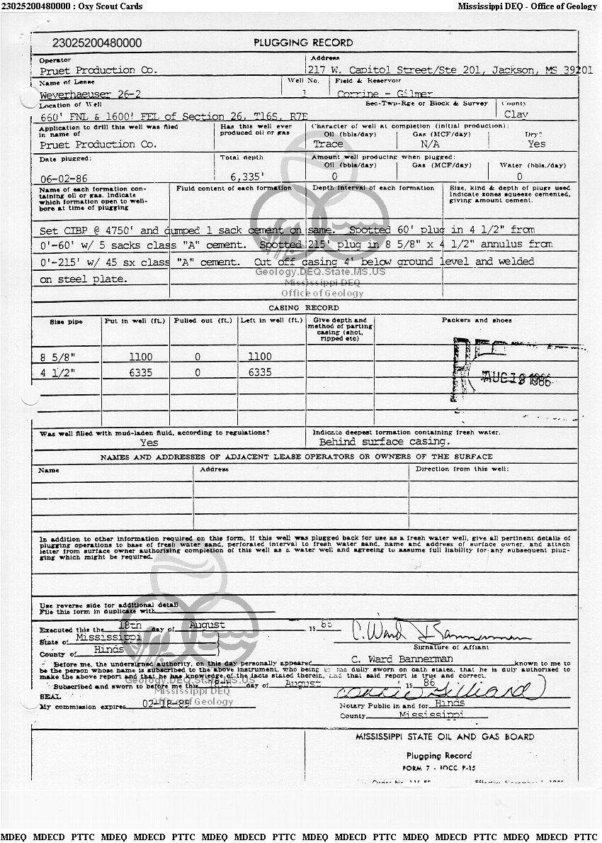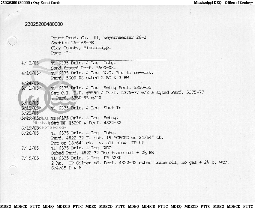 | 1 | 23025200480000 | PRUET PRODUCTION CO | Weyerhaueser 26-2 | 1 | Dry Hole |
