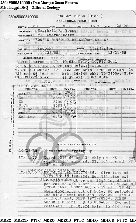 | 1 | 23045000310000 | MARSHALL YOUNG OIL CO | CUEVAS HEIRS | 1 | Production |