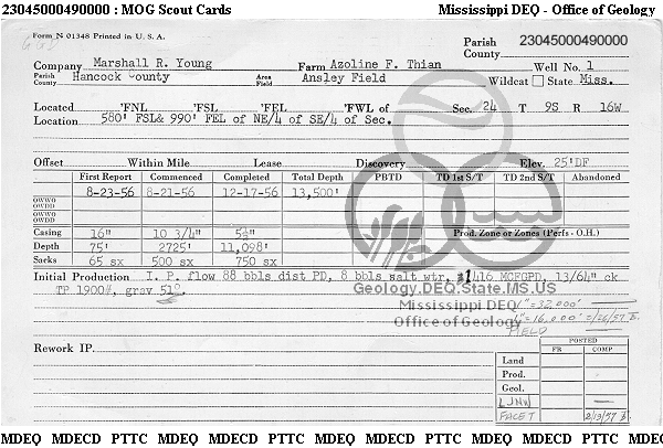 | 1 | 23045000490000 | MARSHALL YOUNG OIL CO | ALOLINE F THIAN | 1 | Production |