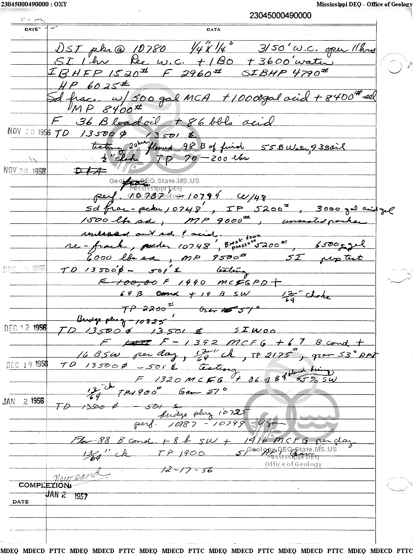| 1 | Samples | 2081.0 - .5 | 2051 | 13500 | E-Log N/A |