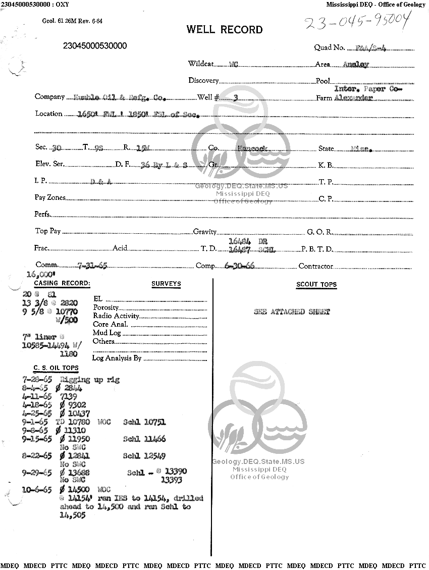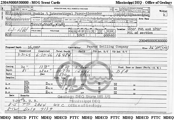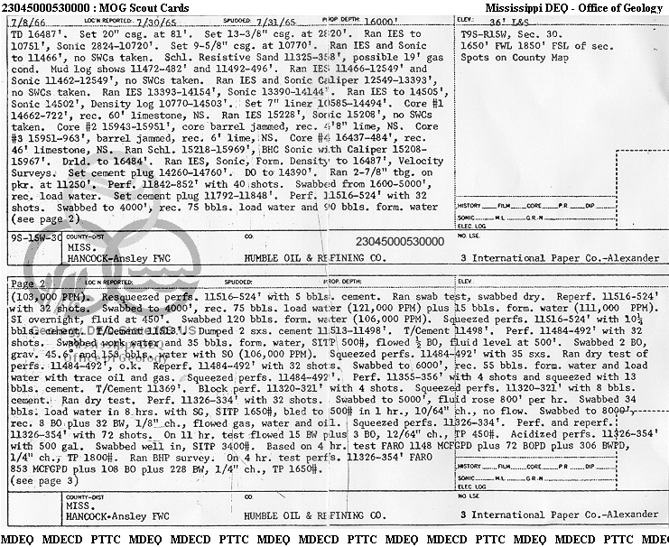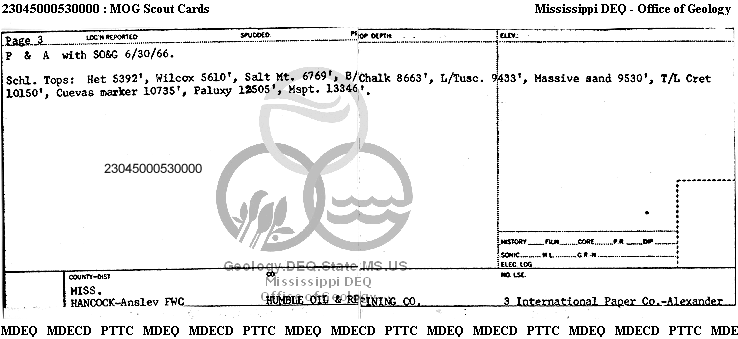| 1 | 23045000530000 | HUMBLE OIL & REFINING CO. | INTERNATIONAL PAPER CO.-ALEXANDER | 3 | Dry Hole |