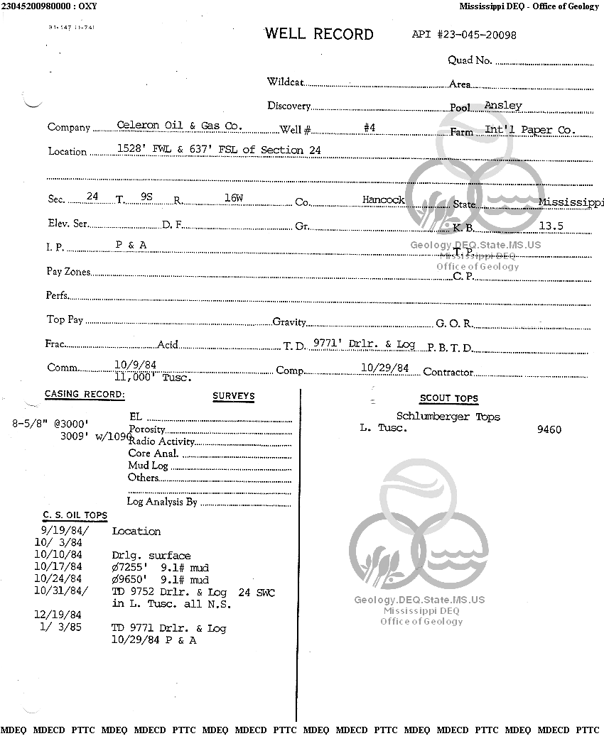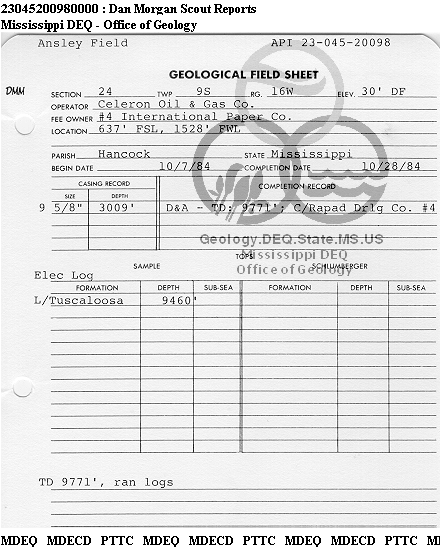 | 1 | 23045200980000 | CELERON OIL AND GAS CO. | INTERNATIONAL PAPER | 4 | Dry Hole |