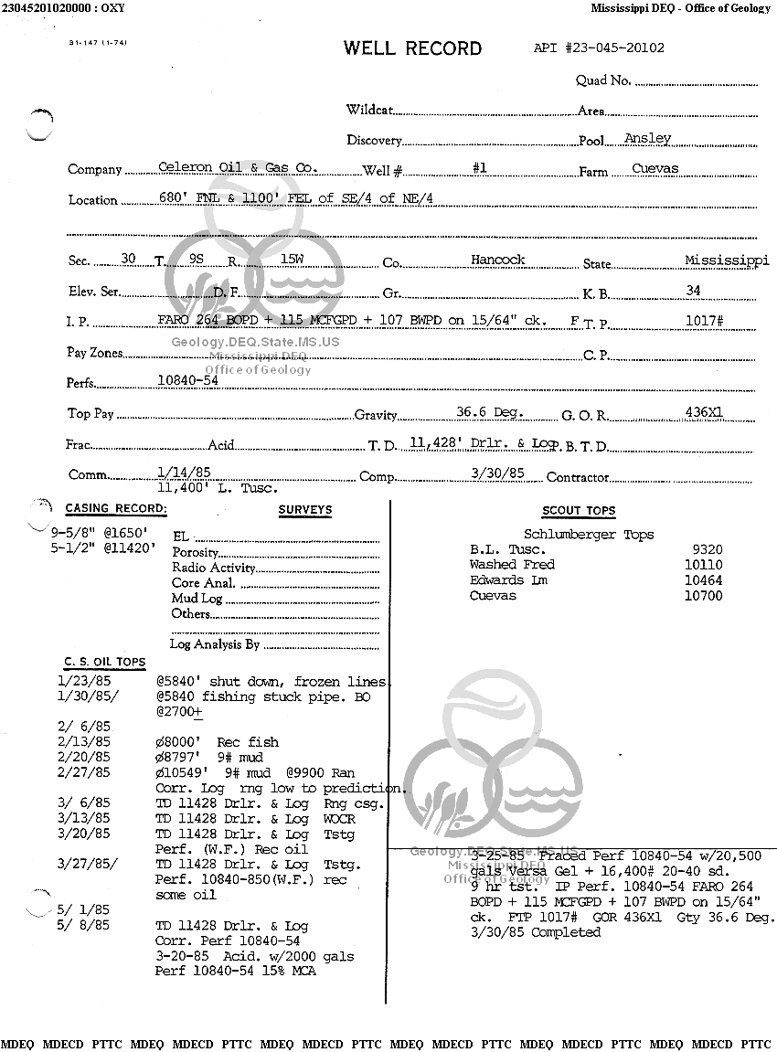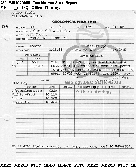 | 1 | 23045201020000 | SMITH PRODUCTION CO | CUEVAS | 1 | Oil Production |