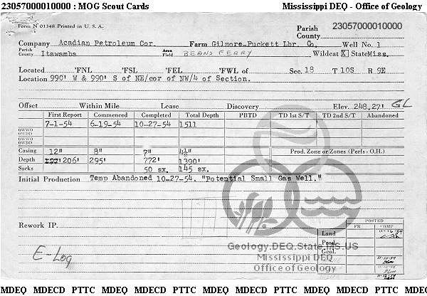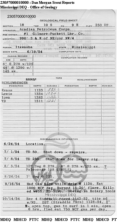 | 1 | 23057000010000 | ITAWAMBA INDUSTRIAL GAS CO | Gilmore-Puckett Lumber | 1 | Production |