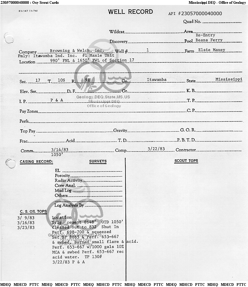 | 1 | 23057000040000 | BROWNING & WELCH, INC | Elsie Maxey | 1 | Production |