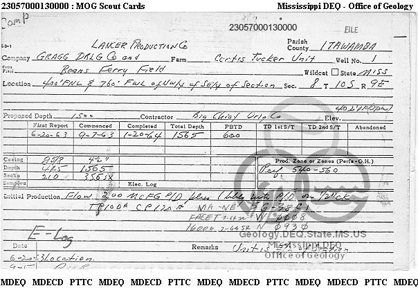 | 1 | 23057000130000 | BILL HOWELL | Curtis Tucker unit | 1 | Domestic Gas Well |