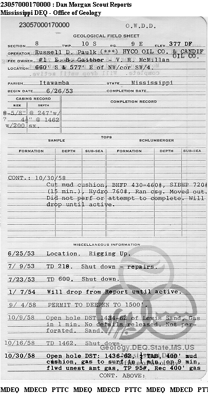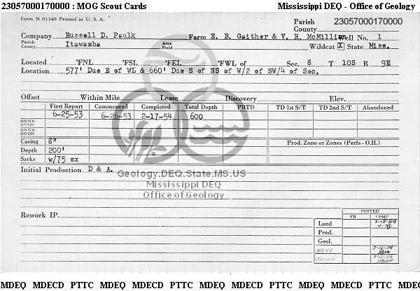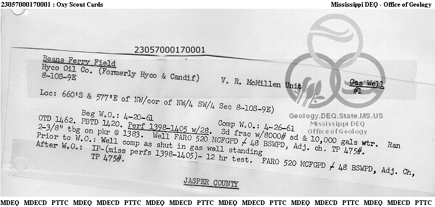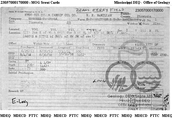 | 1 | 23057000170000 | ITAWAMBA INDUSTRIAL GAS CO | V. R. McMillan | 1 | Production |