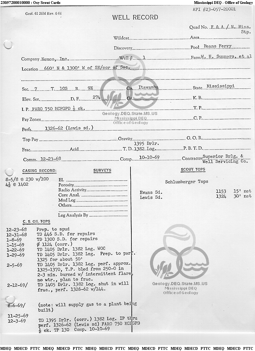 | 1 | 23057200010000 | ITAWAMBA INDUSTRIAL GAS CO | W. H. Summers et al | 1 | Production |