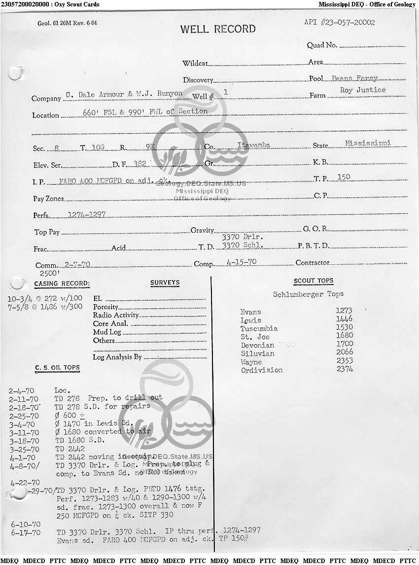 | 1 | 23057200020000 | ITAWAMBA INDUSTRIAL GAS CO | Roy Justice | 1 | Production |