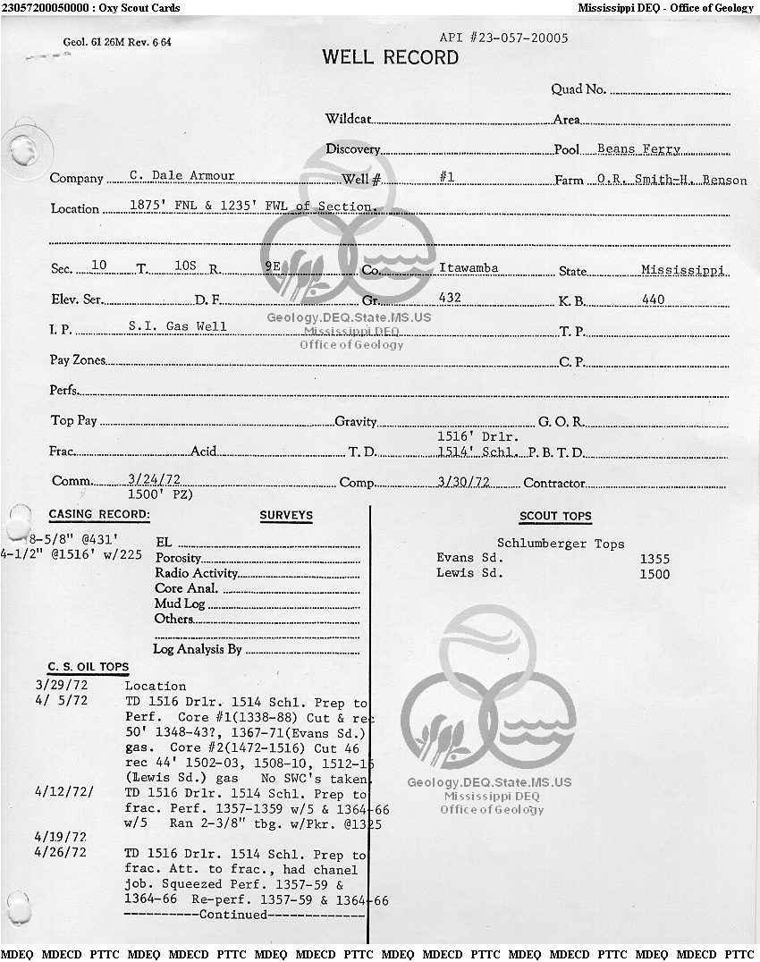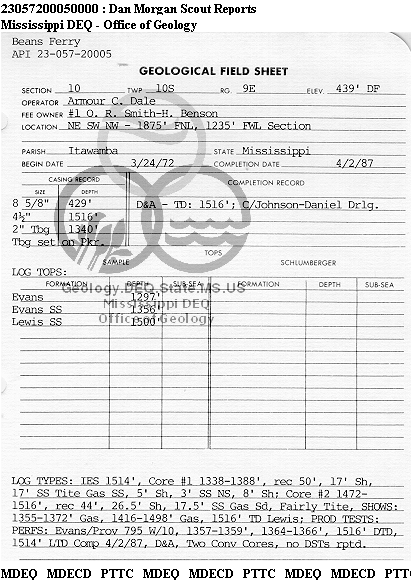 | 1 | 23057200050000 | ARMOUR, DALE C. | O. R. Smith-H. Benson | 1 | Production |