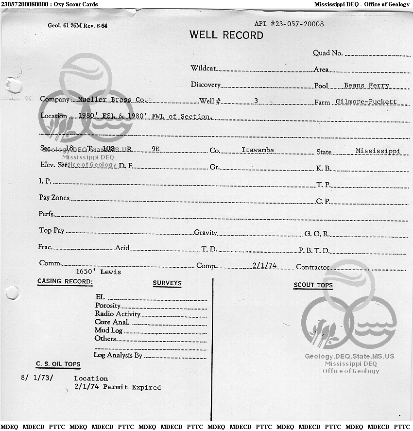 | 1 | 23057200080000 | MUELLER BRASS CO | Gilmore-Puckett | 3 | Expired Location |