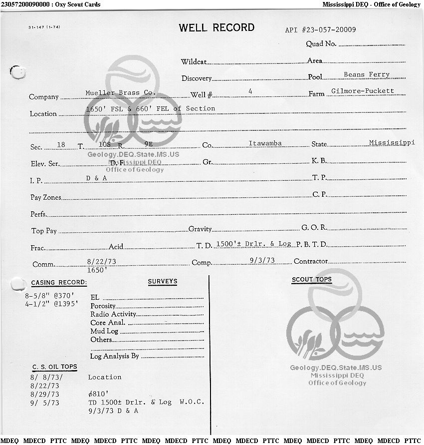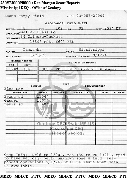 | 1 | 23057200090000 | ITAWAMBA INDUSTRIAL GAS CO | Gilmore-Puckett | 4 | Dry Hole |