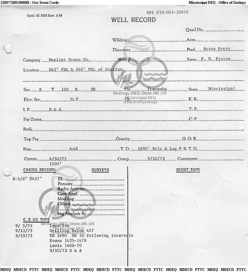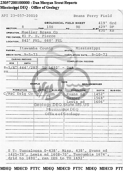 | 1 | 23057200100000 | MULLER BRASS COMPANY | P. H. Pierce | 1 | Dry Hole |