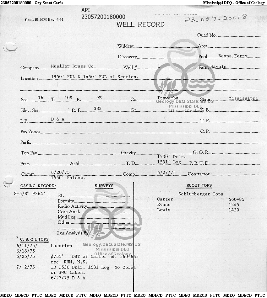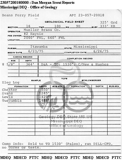 | 1 | 23057200180000 | MULLER BRASS COMPANY | Haynie | 2 | Dry Hole |
