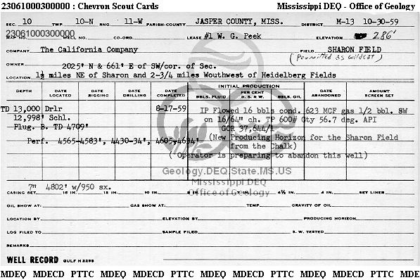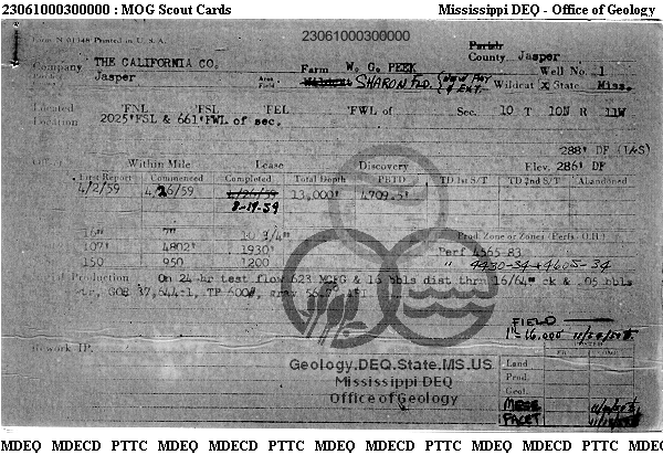 | 1 | 23061000300000 | CALIFORNIA COMPANY | W G PEEK | 1 | Production |
