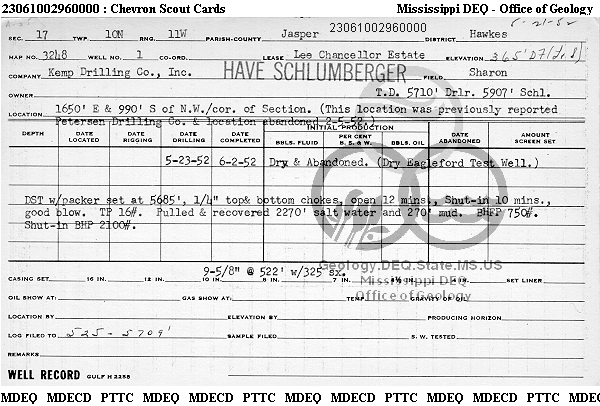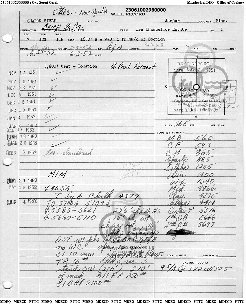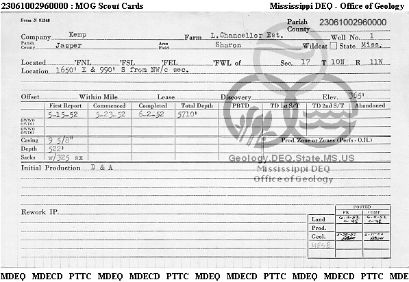 | 1 | 23061002960000 | KEMP, JAMES E. | LEE CHNCELLOR EST | 1 | Dry Hole |