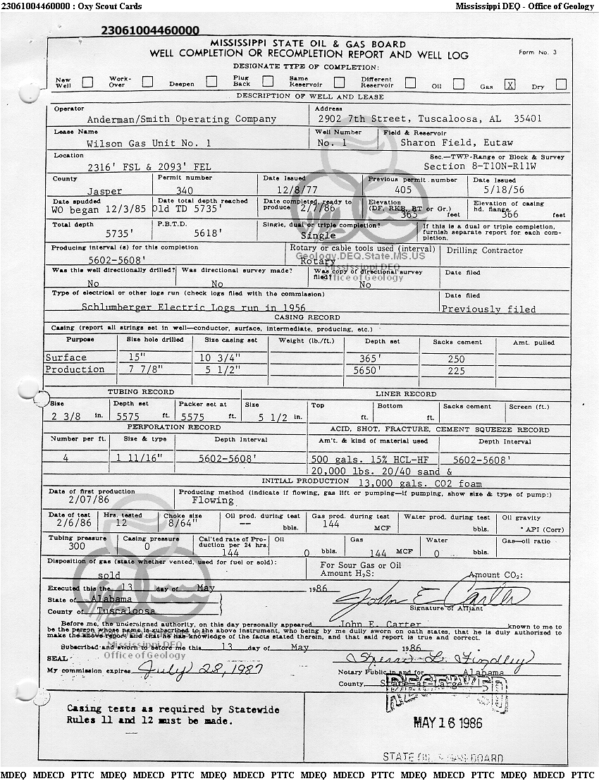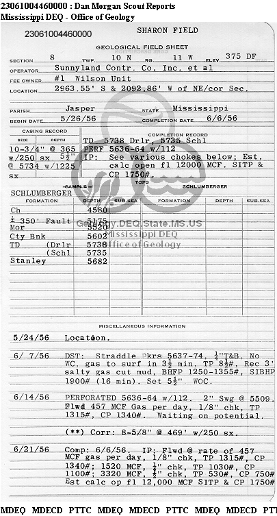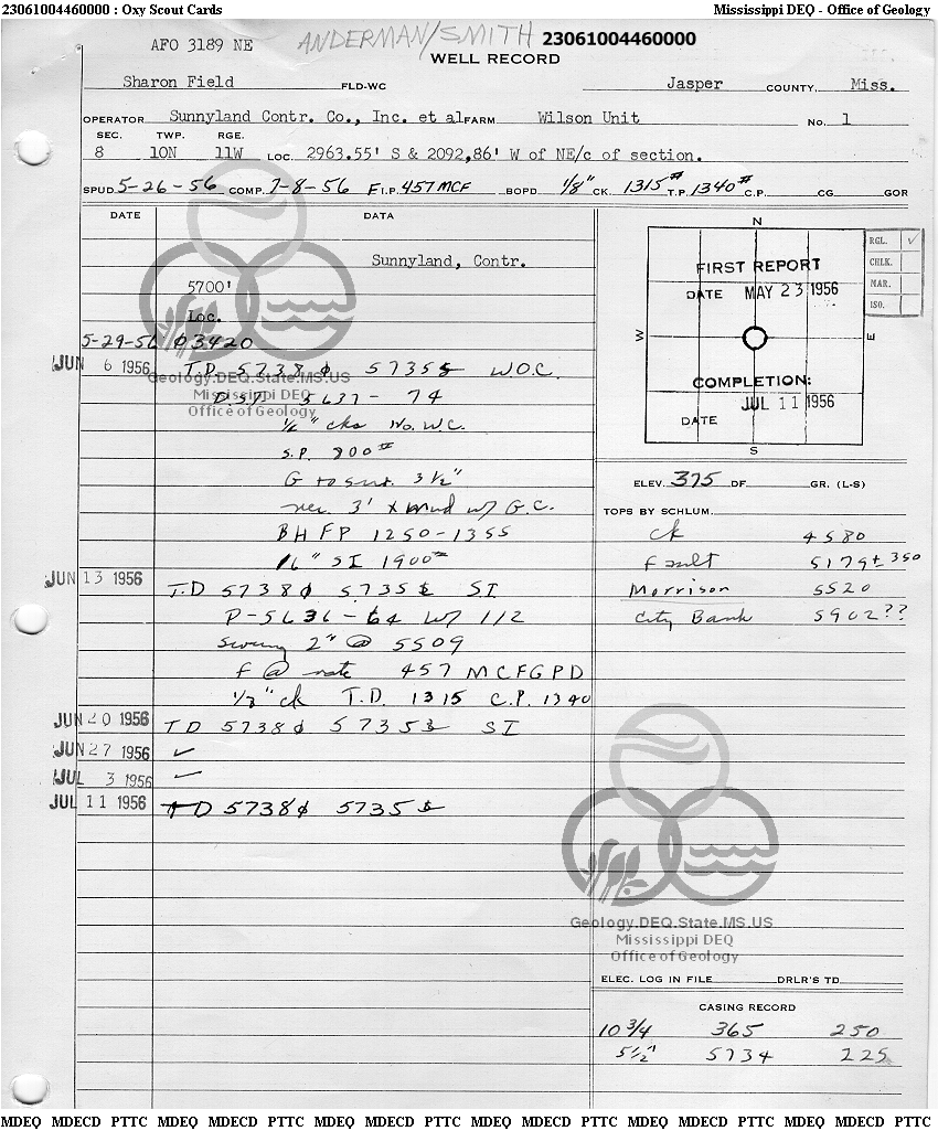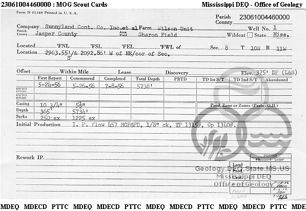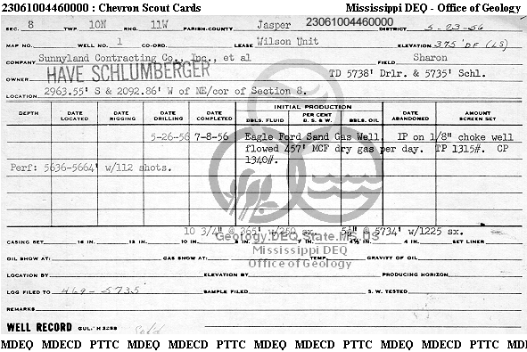 | 1 | 23061004460000 | CHEYENNE MINERALS INC | WILSON UNIT | 1 | Production |