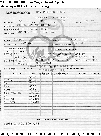 | 1 | 23061005000000 | PETROCI USA INC. | G WINDHAM UNIT | 1 | Oil Production |