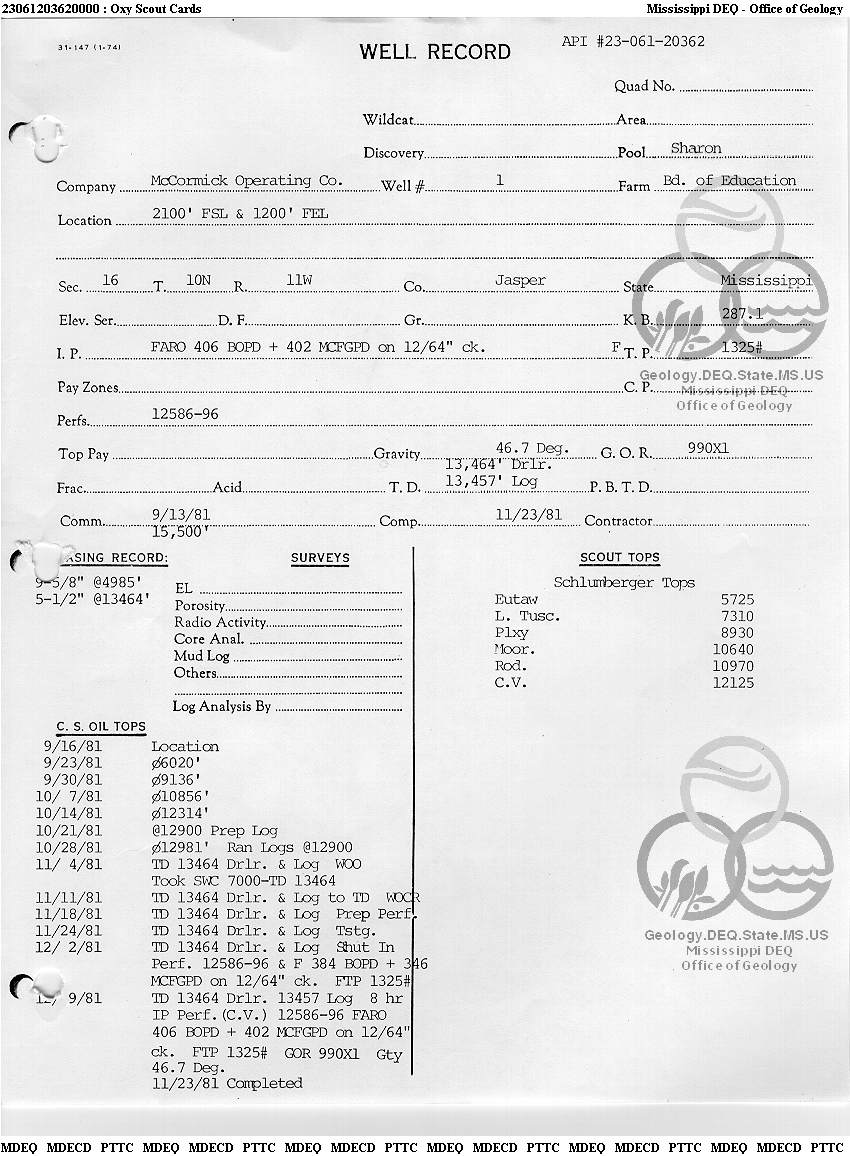 | 1 | 23061203620000 | MCCORMICK OPERATING CO. | BD OF EDUCATION | 1 | Oil Production |