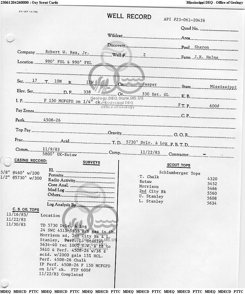 | 1 | 23061204260001 | DENBURY ONSHORE, LLC | HELMS J R | 2 | Production |