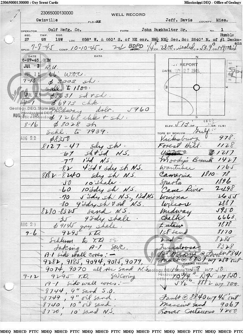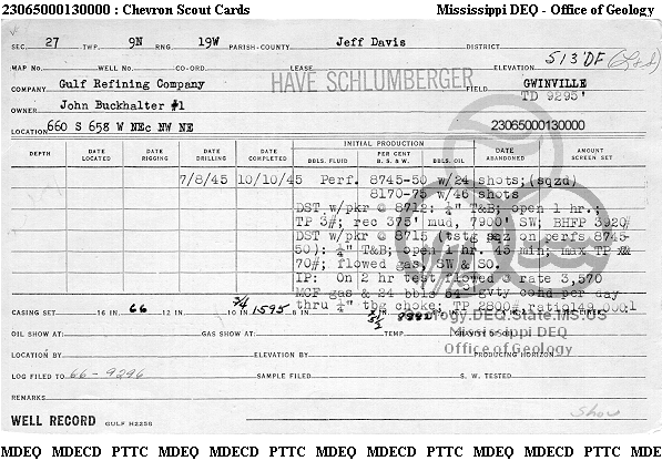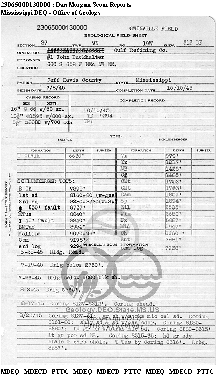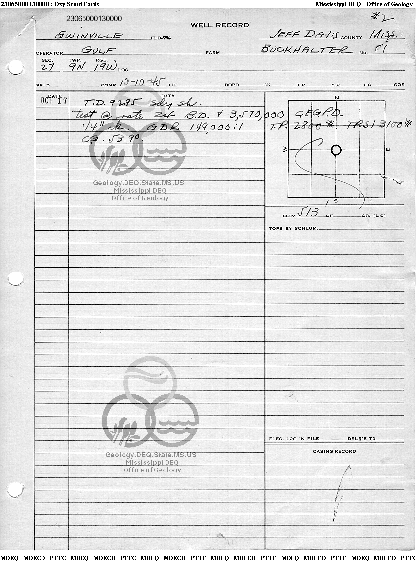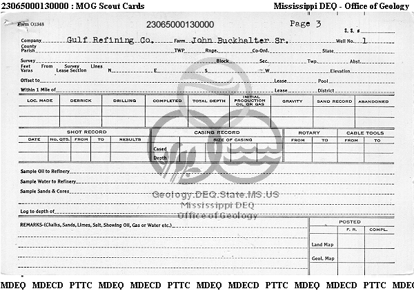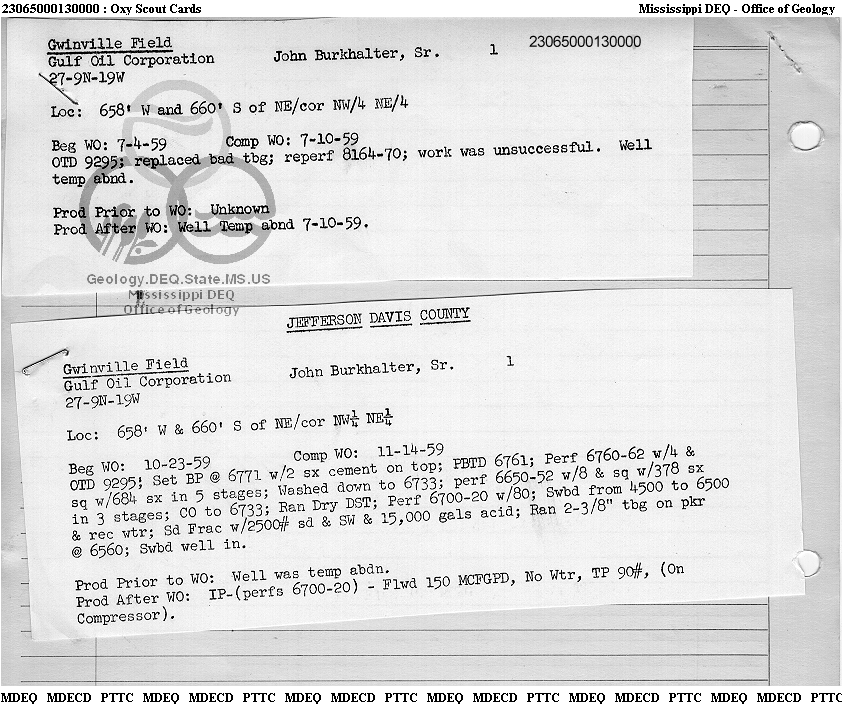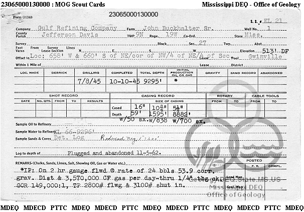 | 1 | 23065000130000 | GULF OIL CORP. | JOHN BUCKHALTER SR | 1 | Production |