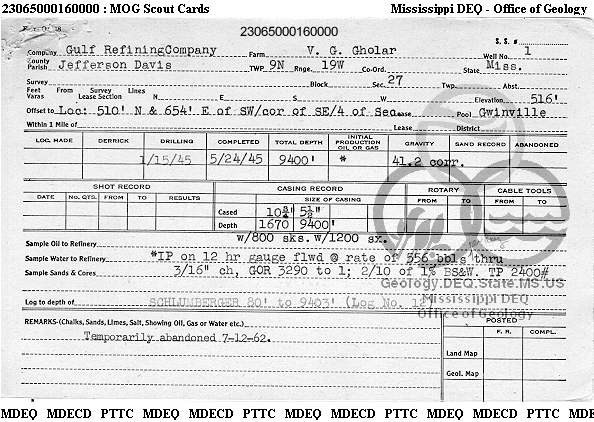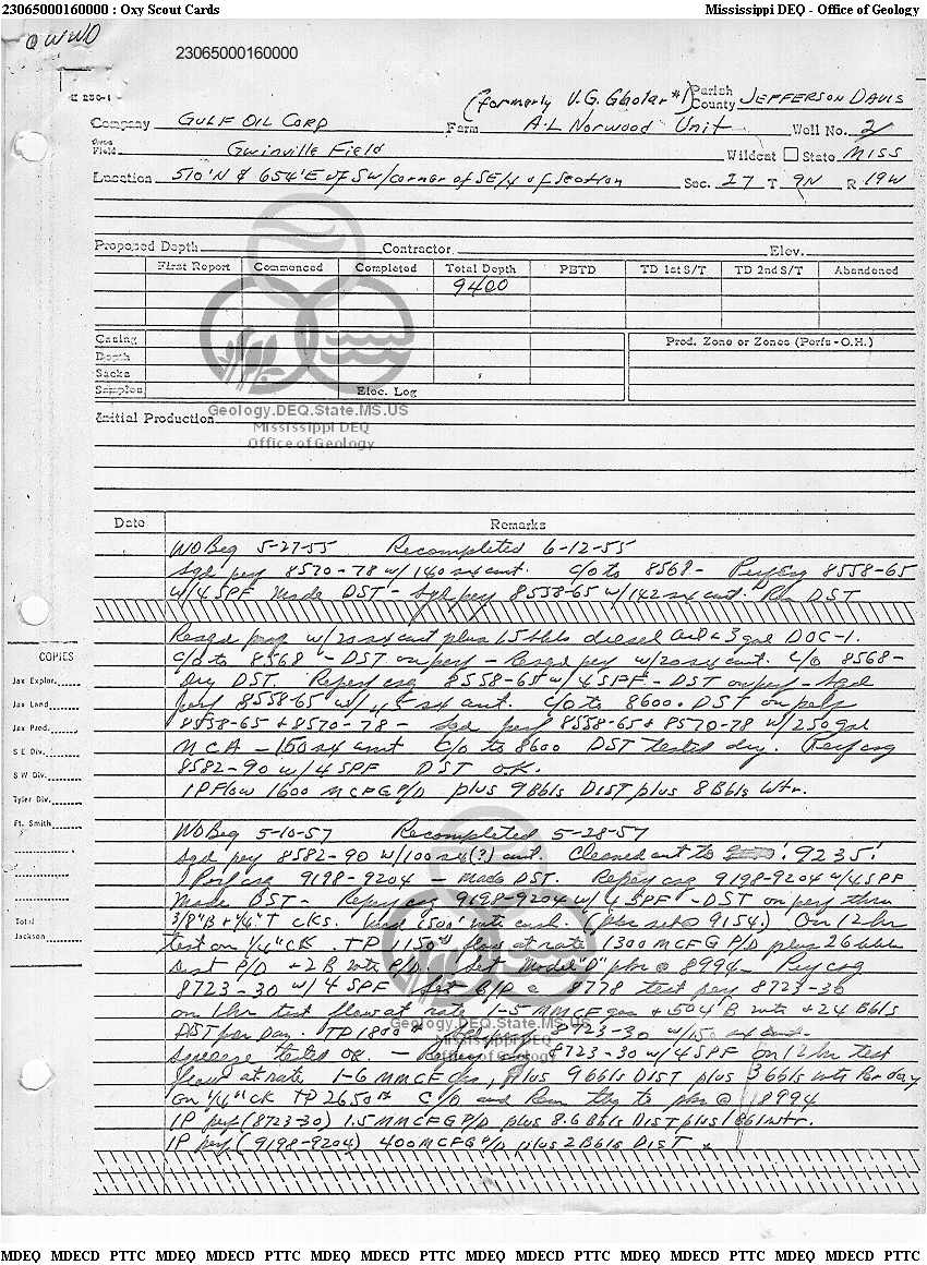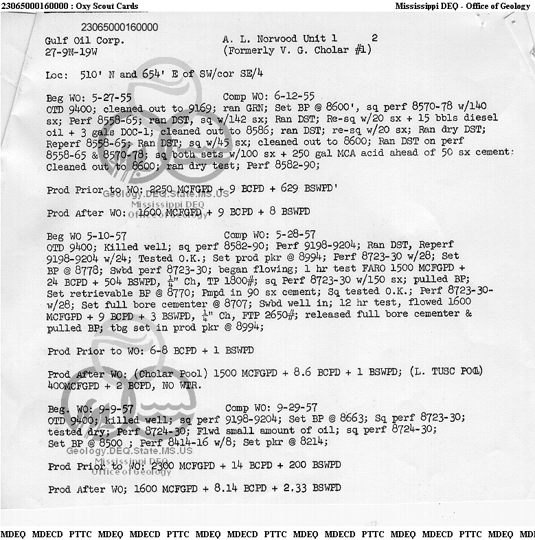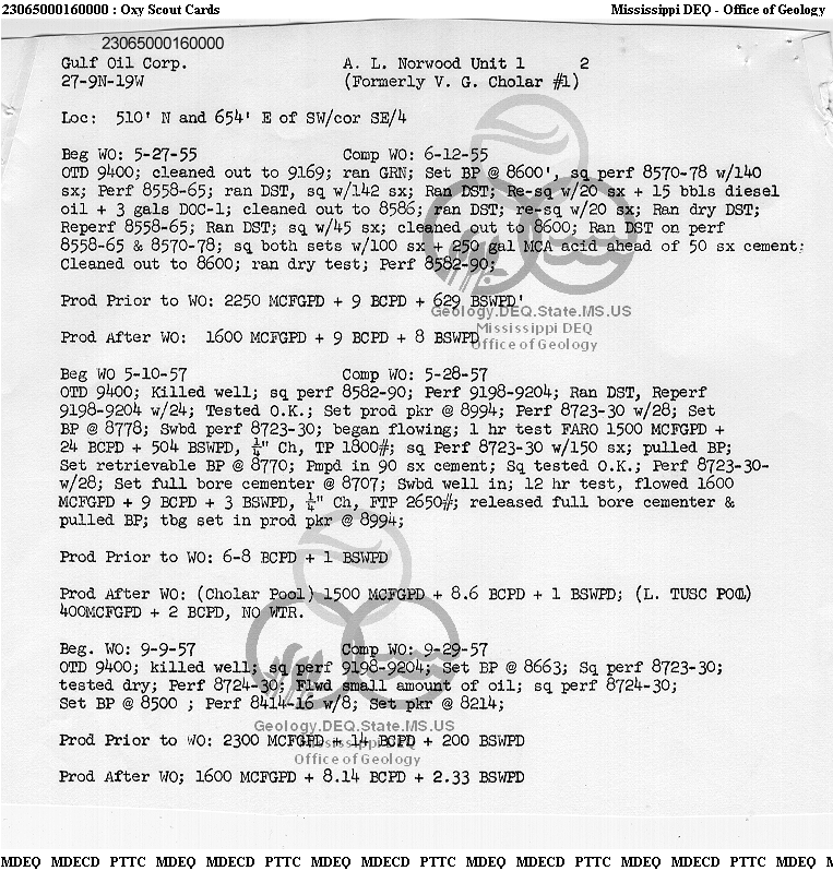 | 1 | 23065000160000 | GULF OIL CORP. | A. L. NORWOOD UNIT | 2 | Oil Production |