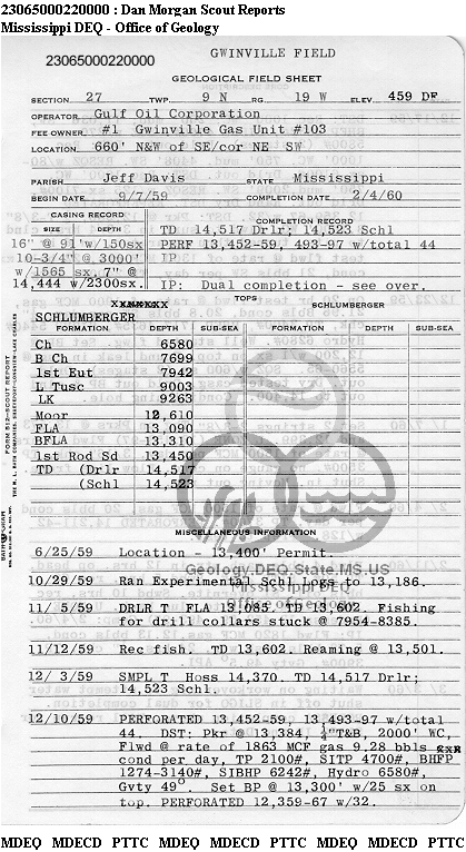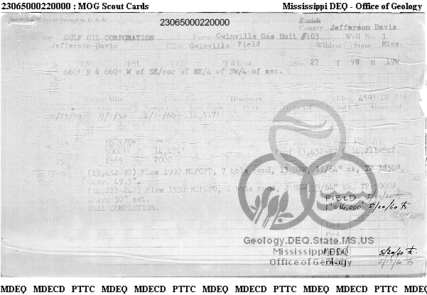 | 1 | 23065000220000 | WILL-DRILL PRODUCTION CO INC | GWINVILLE GU 103 | 1 | Production |