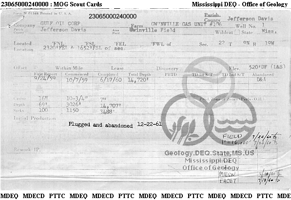 | 1 | 23065000240000 | WILL-DRILL PRODUCTION CO INC | GWINVILLE GAS UNIT 106 A | 1 | Production |