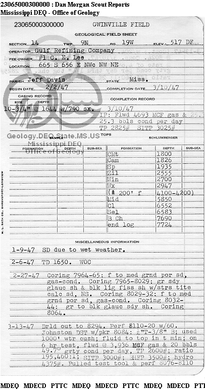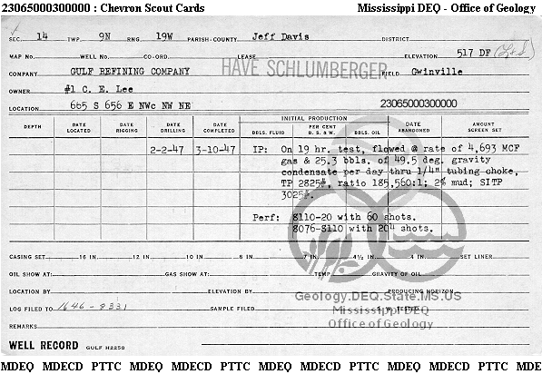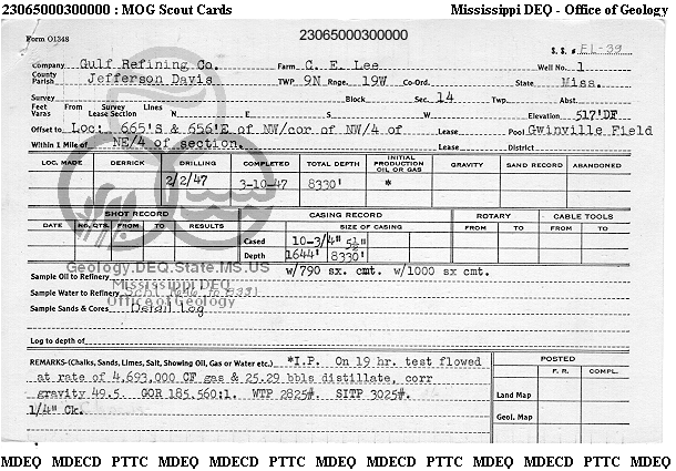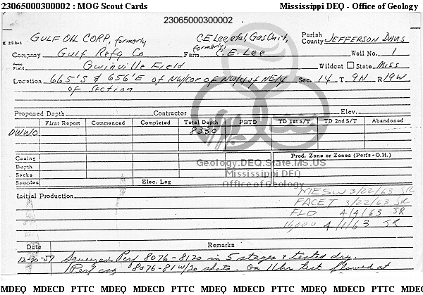 | 1 | 23065000300000 | GULF OIL CORP. | C E LEE | 1 | Production |