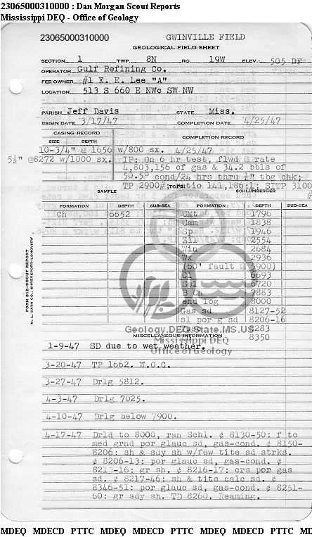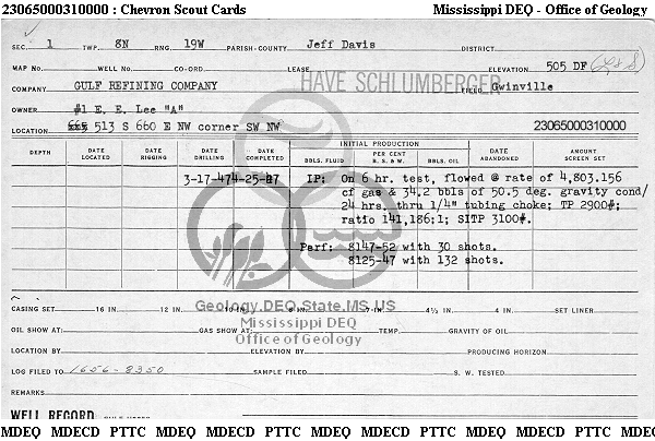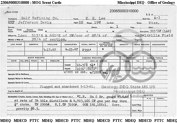 | 1 | 23065000310000 | GULF OIL CORP. | E E LEE A | 1 | Production |