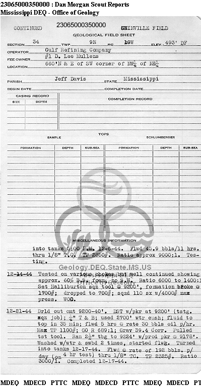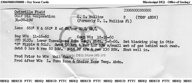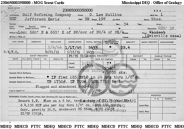 | 1 | 23065000350000 | GULF OIL CORP. | D LEE MULLINS | 1 | Oil Production |