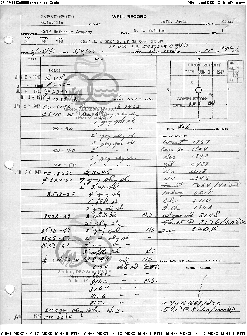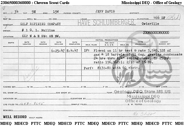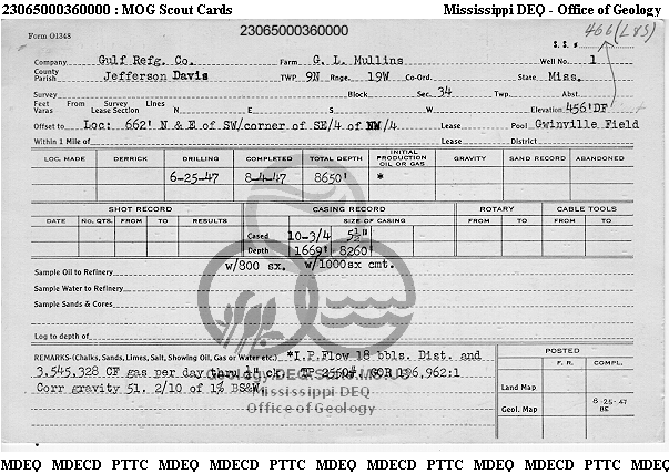 | 1 | 23065000360000 | GULF REFINING CO. | G L MULLINS | 1 | Production |