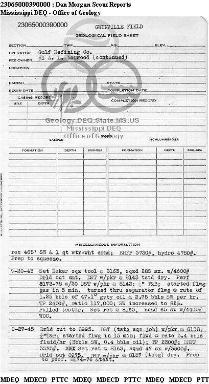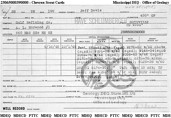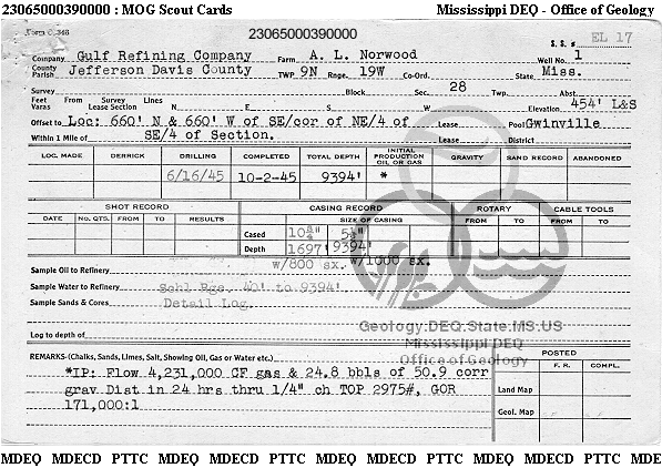| 1 | 23065000390000 | GULF REFINING CO. | A L NORWOOD | 1 | Production |