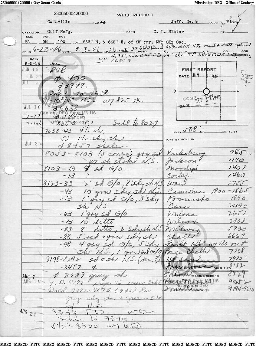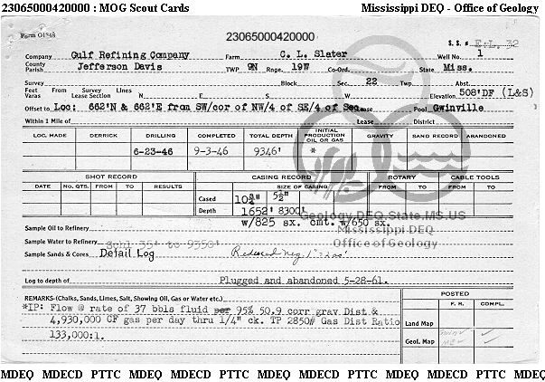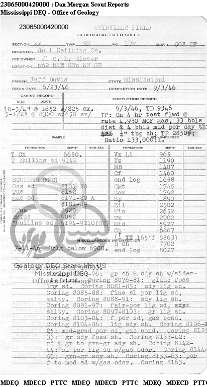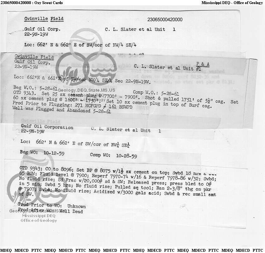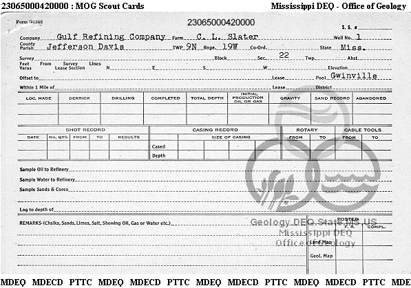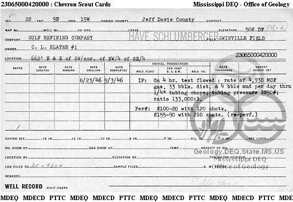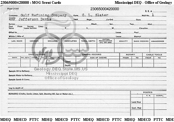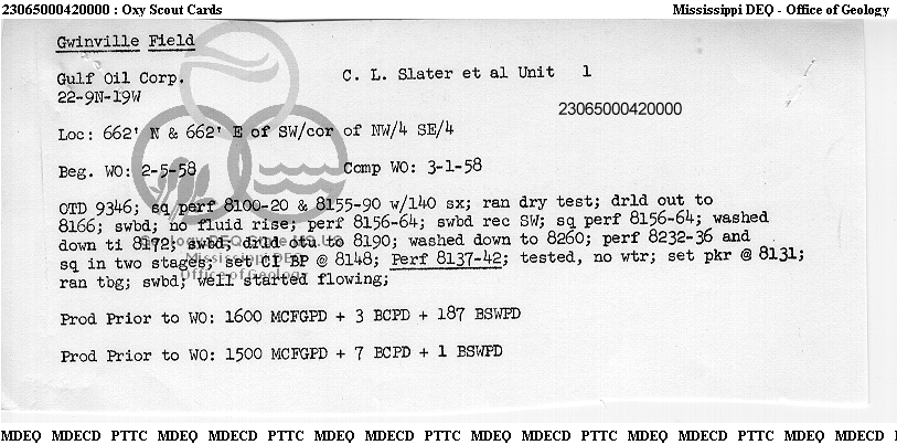 | 1 | 23065000420000 | GULF OIL CORP. | C L SLATER | 1 | Production |