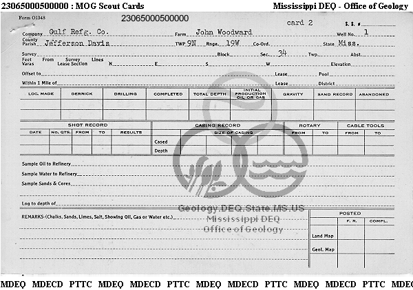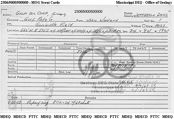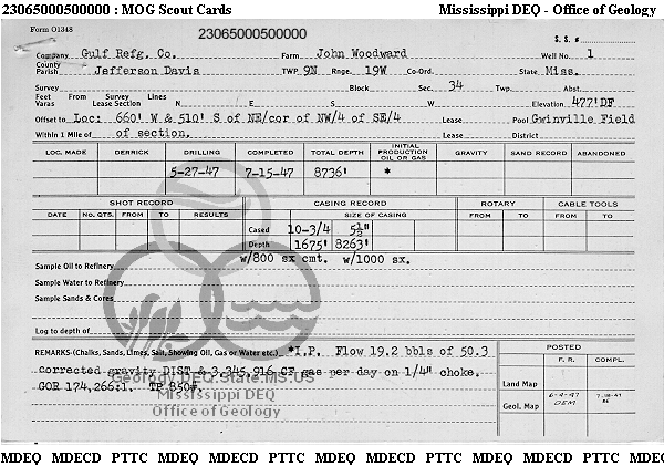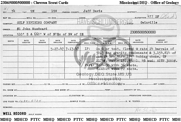 | 1 | 23065000500000 | GULF OIL CORP. | JOHN WOODWARD | 1 | Production |