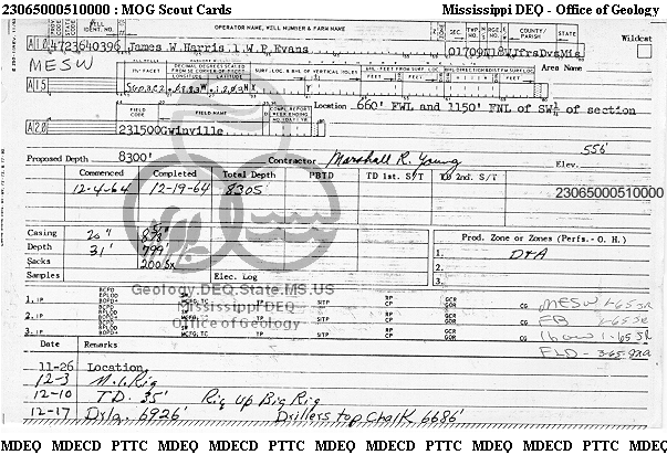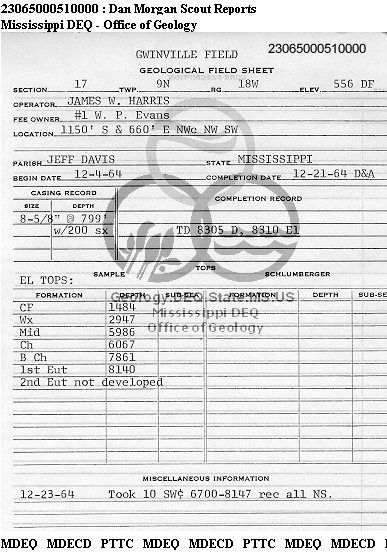 | 1 | 23065000510000 | JAMES W. HARRIS | W P EVANS | 1 | Dry Hole |
